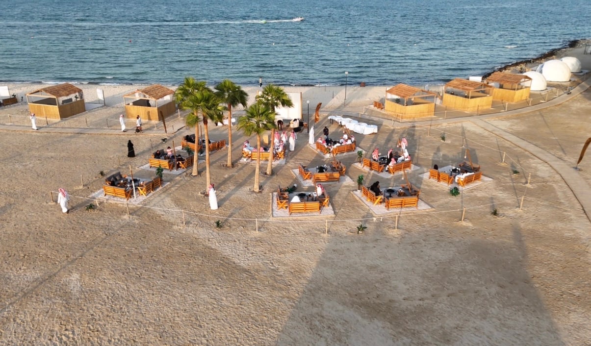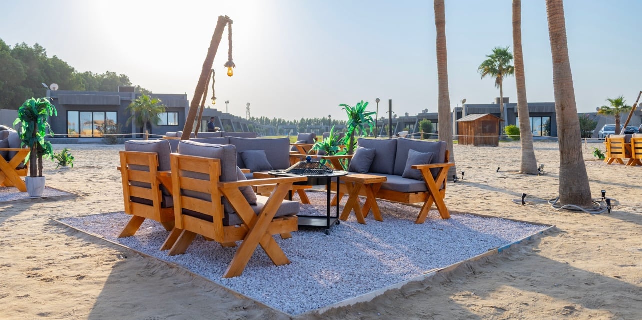 جلساتٌ تتنفس بروح الطبيعة وأناقة التفاصيل، مصنوعة من الخشب و مطرزه بالبامبو الذي يعكس دفء المكان ويمنحه طابعًا بحريًا راقيًا.